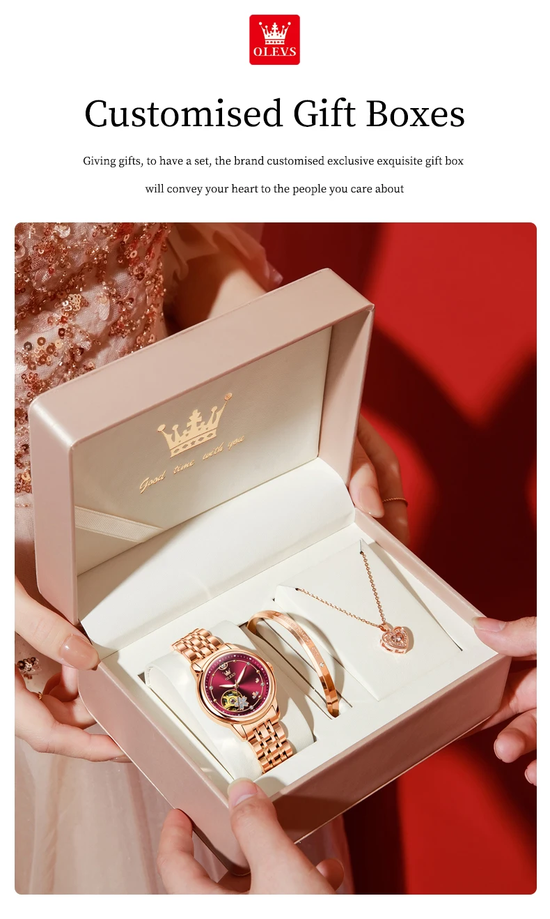 6732 New Womens Watch Original Luxury Skeleton Mechanical Watches Waterproof Luminous Watches for Women Set Bracelet Gift