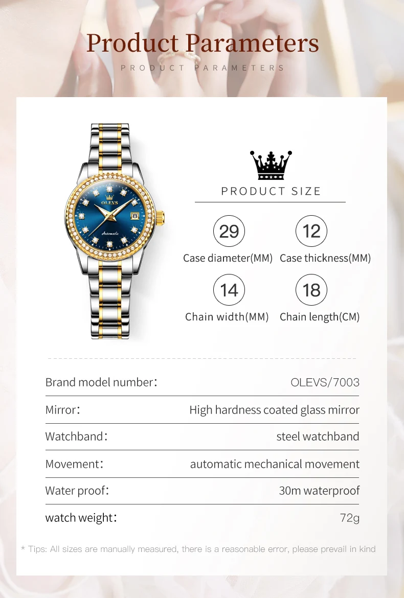7003 Automatic Mechanical Women'S Watches Waterproof Luminous Calendar Ladies Wristwatches Luxury Diamond Watch for Woman