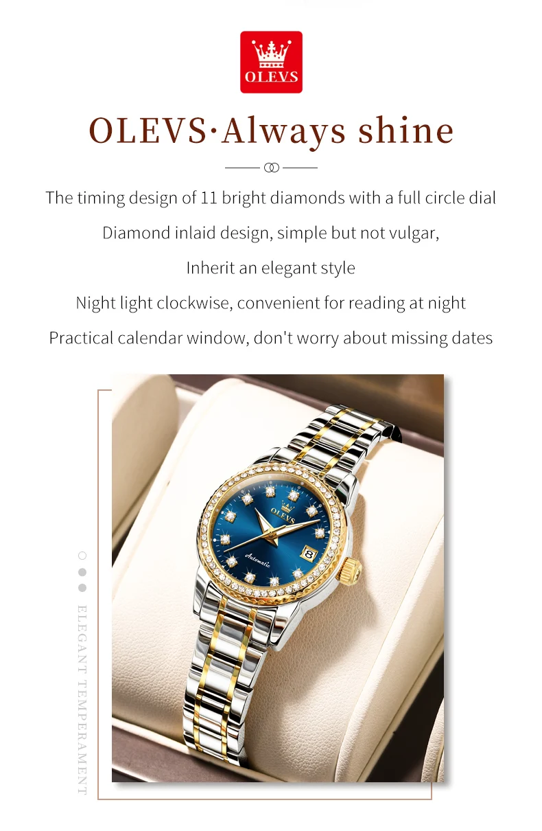 Discover sophistication and reliability with this Automatic Mechanical Women’s Watch, crafted for women who appreciate luxury, precision, and timeless style. Designed with a shimmering diamond-accented dial, this watch radiates elegance while delivering the performance of a true mechanical timepiece.