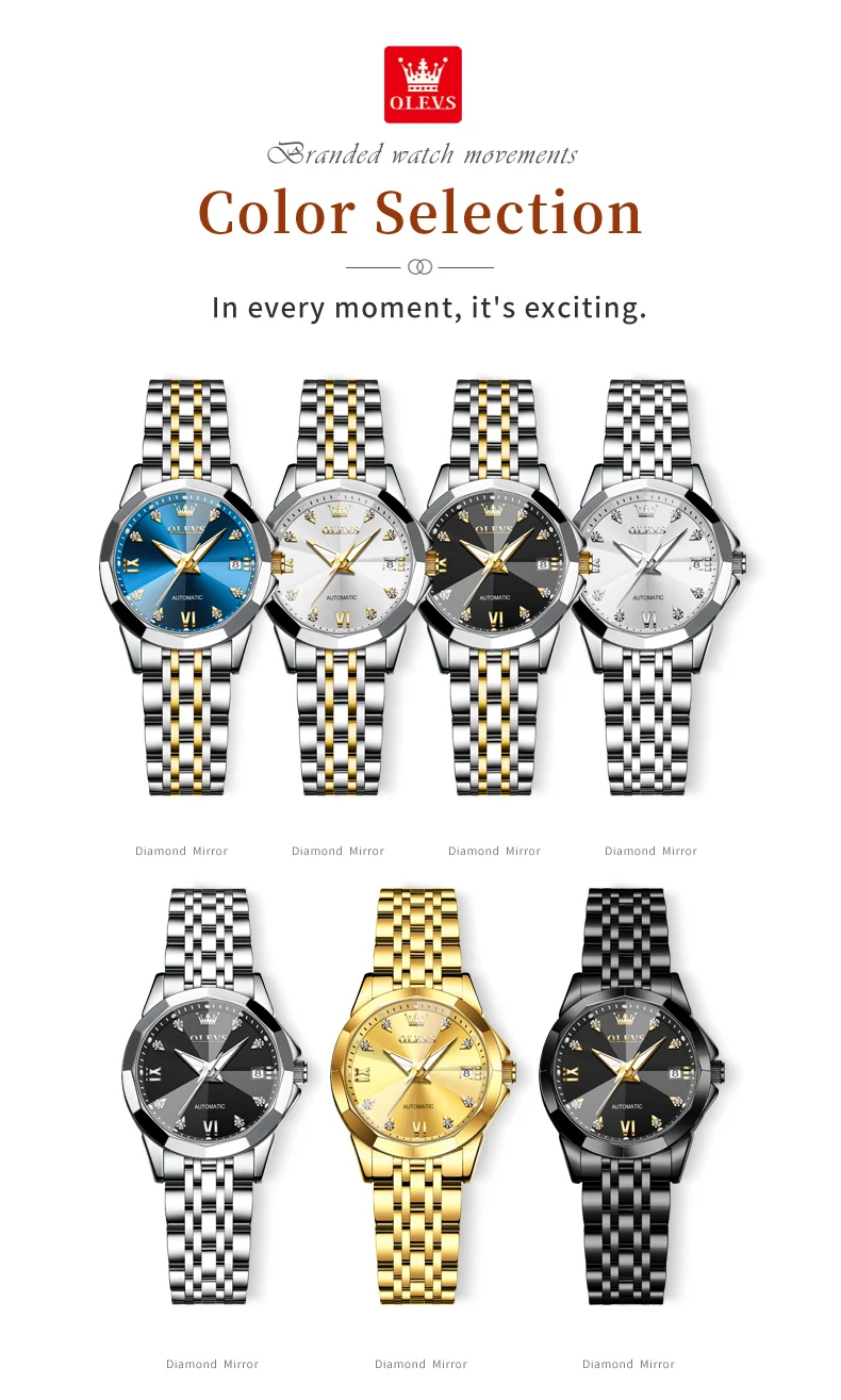 Elevate your everyday style with this Automatic Stainless Steel Women’s Watch, designed for modern women who appreciate a perfect balance of luxury, durability, and elegance. Featuring a distinctive rhombus-shaped mirror dial, this timepiece stands out with its unique geometric charm and refined aesthetic.