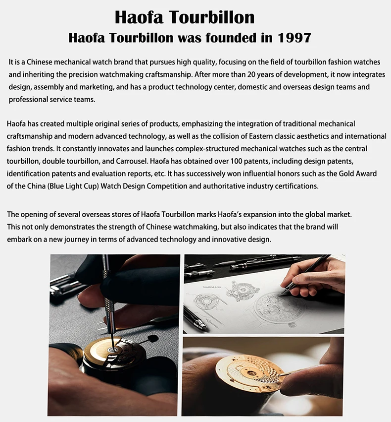 Haofa Automatic Tourbillon Mechanical Man Watch Luxury Skeleton Flying Tourbillon Crystal Case Waterproof Watches for Man
